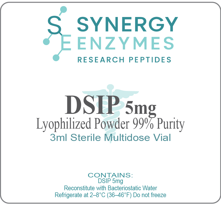 Each vial contains high-purity, lyophilized DSIP powder supplied in a sterile 3 mL container, intended for research and analytical use only.